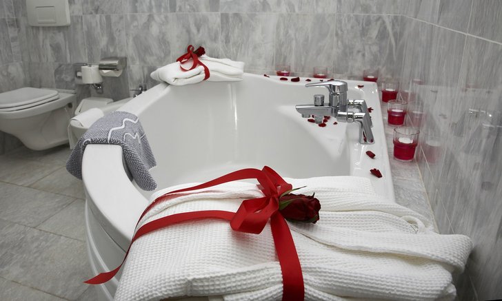 การเพิ่มกลีบกุหลาบลงไปในห้องน้ำ รอบๆ อ่างอาบน้ำ ทำให้เกิดความรู้สึกโรแมนติกขึ้นไม่น้อย